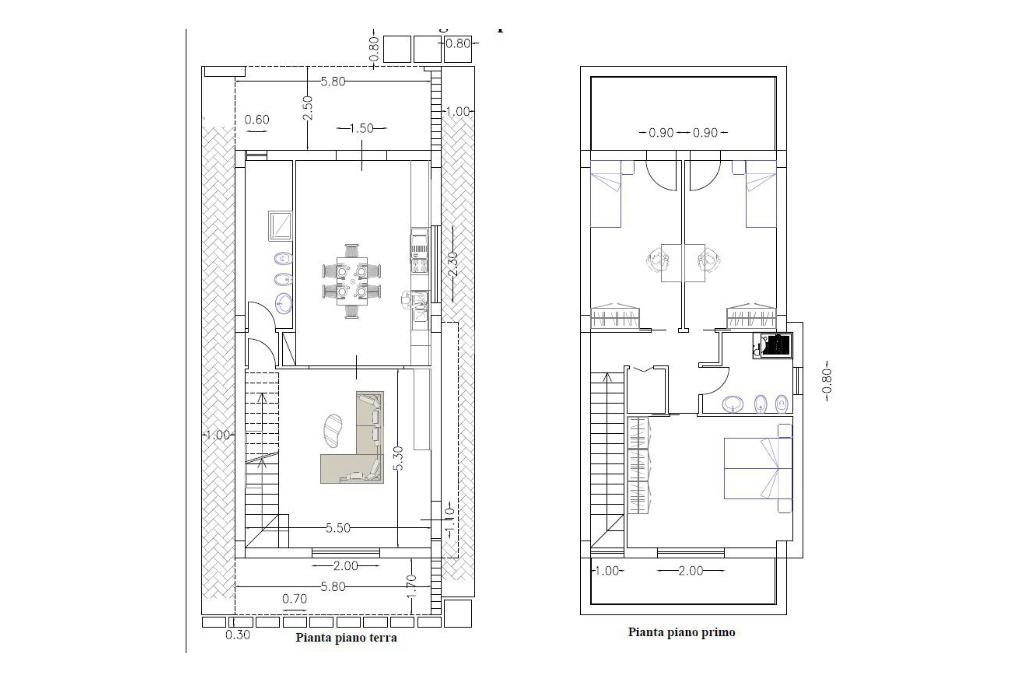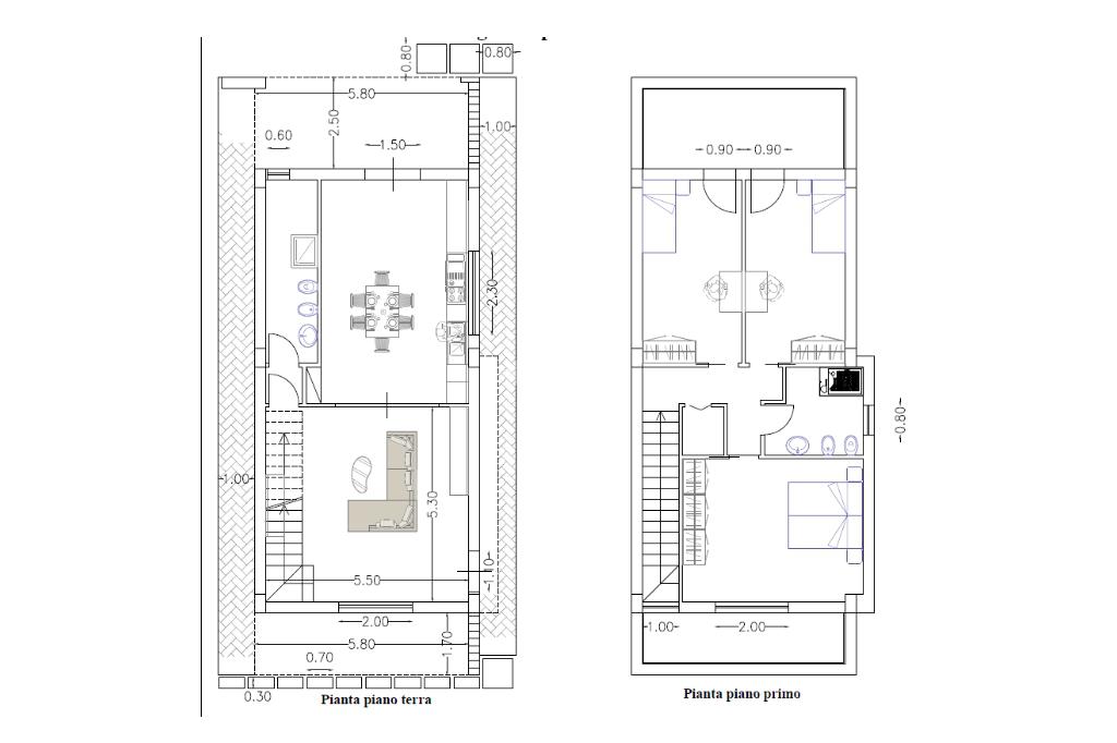 - al PRIMO PIANO, raggiungibile con scala interna, troviamo camera da letto con balcone, due camerette con terrazzo, bagno e ripostiglio.